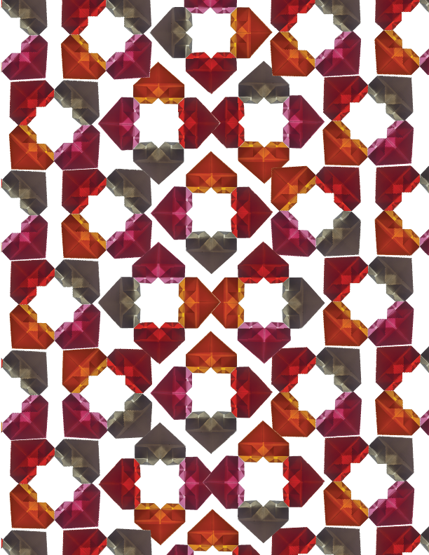 Using translucent colored paper, I made more hearts and photographed them on a lightboard. The goal was to capture the layers and folds of the hearts and the different shades of color. From here I put the images into Illustrator and played around with size and orientation to create geometric patterns.